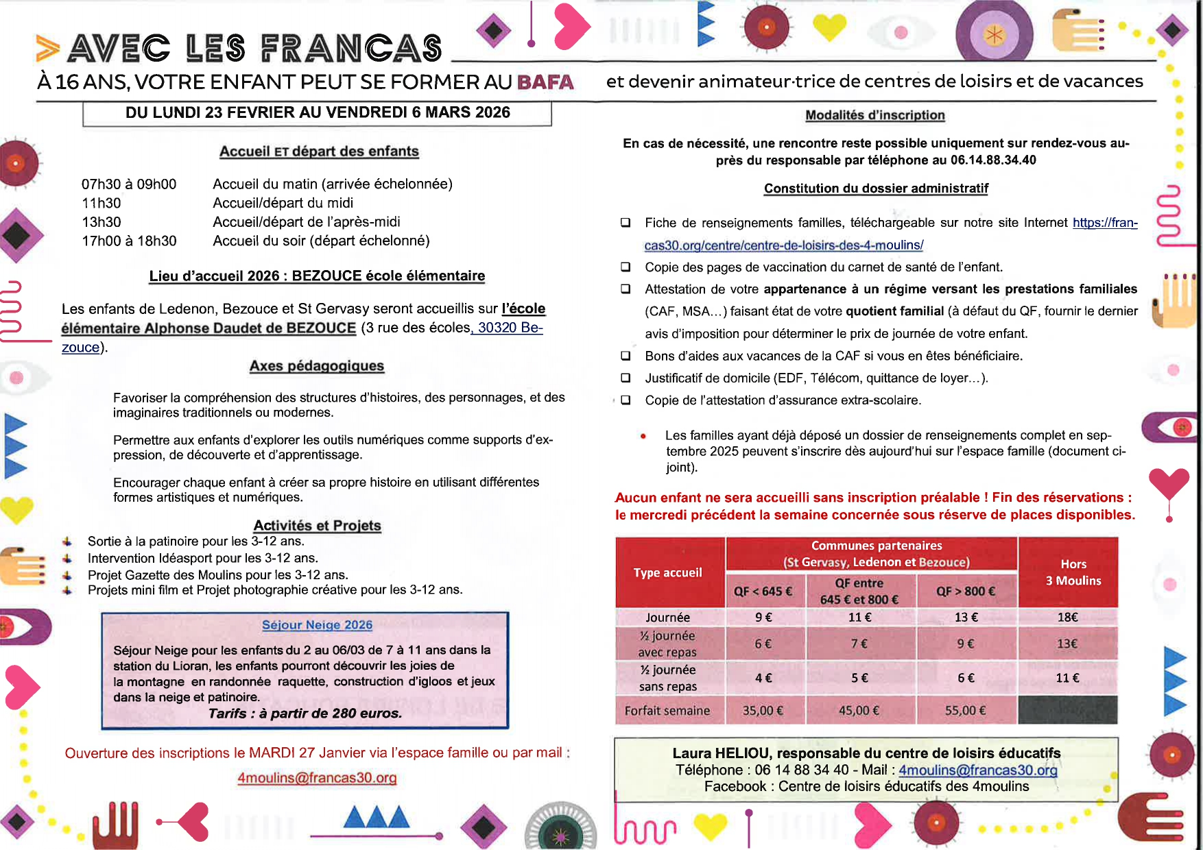 Centre de loisirs- Vacances d'hiver